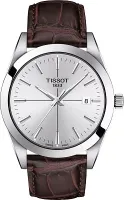 В нашем ассортименте представлены оригинальные мужские часы Tissot Gentleman — это идеальный повседневный и стильный аксессуар, который станет прекрасным дополнением к любому образу благодаря классическому и элегантному дизайну с диаметром корпуса 40 мм. Часы оснащены надежным кварцевым механизмом "Swiss quartz" с калибром 11 1/2''' и функцией EOL (индикатором заряда батареи), приводимым в действие батареей Renata 371, а диаметр механизма составляет 25,6 мм. Корпус круглой формы изготовлен из нержавеющей стали 316L, имеет длину 40 мм, ширину 40 мм и толщину 8,52 мм, а расстояние между ушками — 21 мм. Защиту циферблата серебристого цвета с индексами обеспечивает выпуклое устойчивое к царапинам сапфировое стекло. Стрелки имеют люминесцентное покрытие Super-LumiNova ®. Вес часов — 70 г. Коричневый кожаный ремешок длиной 120 мм для стороны 6 часов и 75 мм для стороны 12 часов оснащен застежкой-бабочкой с кнопками и имеет опцию быстрой замены. Водонепроницаемость данной модели составляет 100 метров (10 АТМ/bar): подходят для плавания и погружения на глубину 5-7 м (выдвигать заводную головку и нажимать кнопки, находясь в воде, нельзя).
