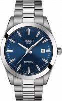 Встречайте Tissot Gentleman Titanium — идеальный аксессуар на каждый день, сочетающий в себе классическую элегантность и современную легкость. Эти оригинальные часы станут безупречным дополнением к любому стилю благодаря своему диаметру корпуса 40 мм. Представленная модель имеет прочный корпус и цельный браслет из титана. Вес часов составляет всего 90 г. Корпус имеет круглую форму и выполнен из титана. Эти мужские швейцарские часы оснащены кварцевым механизмом Swiss quartz с калибром 11 1/2''' и диаметром 25,6 мм, работающим на батарее типа Renata 371. Одной из функций является индикатор EOL, сигнализирующий об окончании срока службы элемента питания. Циферблат синего цвета с индексами защищен выпуклым устойчивым к появлению царапин сапфировым стеклом. Люминесцентный состав Super-LumiNova на стрелках обеспечивает отличную читаемость в темноте. Браслет из титана серого цвета оснащен застежкой-бабочкой с кнопками. Толщина корпуса — 8,52 мм, ширина ушка — 21 мм. Водозащита 100 метров (10 АТМ/bar): подходят для плавания и погружения на глубину 5-7 м (выдвигать заводную головку и нажимать кнопки, находясь в воде, нельзя).