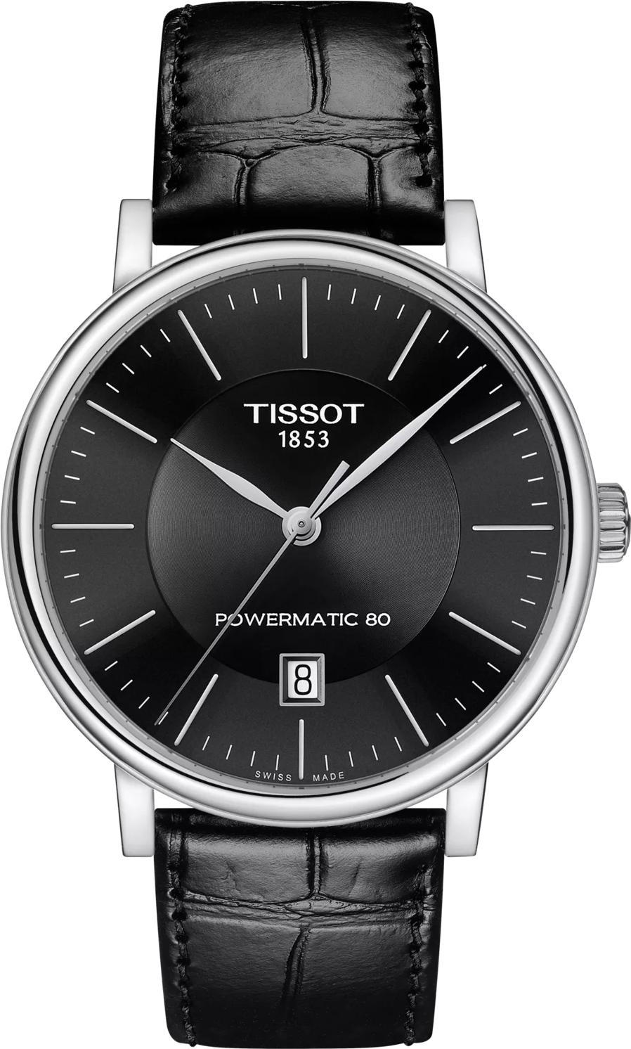 Мужские часы Tissot Carson Premium Powermatic 80 — это безупречный компаньон для любого важного момента в вашей жизни. Эти оригинальные часы созданы, чтобы идти в ногу со временем, благодаря своему классическому стилю, который никогда не устареет. Великолепный вид модели подчеркнут изящным дизайном циферблата и удлиненными тонкими стрелками, которые элегантно перемещаются по циферблату. Страна-производитель — Швейцария, что подтверждает высокое качество этих часов. Модель оснащена швейцарским автоматическим механизмом с функцией отображения часов, минут, секунд и даты (HMSD). Калибр — 11 1/2''' (диаметр 25,6 мм) с запасом хода до 80 часов. Корпус круглой формы диаметром 40 мм и толщиной 10,25 мм изготовлен из нержавеющей стали 316L и имеет прозрачную заднюю крышку. Вес часов составляет 58 г. Циферблат черного цвета с накладными индексами защищен выпуклым сапфировым стеклом с антибликовым покрытием, устойчивым к царапинам. Ремешок из кожи черного цвета шириной 20 мм с классической застежкой имеет систему быстрой замены. Водонепроницаемость 50 метров (5 АТМ/bar): выдерживают мытье рук, попадание крупных капель.