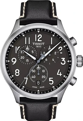 Откройте для себя мужские часы Tissot Chrono XL — один из самых крупных хронографов с диаметром 45 мм в коллекции Tissot, который станет отличным выбором для ценителей спортивной элегантности и швейцарской точности. Корпус из нержавеющей стали 316L, отличающейся высокими антикоррозийными свойствами, обеспечивает надежность, а сапфировое стекло, устойчивое к царапинам, гарантирует превосходную защиту циферблата. Внутри корпуса размещен кварцевый механизм Swiss quartz с калибром 13 1/4''' (диаметр 29,8 мм), оснащенный индикатором EOL (battery end-of-life indicator), который предупредит о необходимости замены батарейки Renata 394. Толщина корпуса составляет 11,02 мм, а вес часов — 79 г. Водонепроницаемость 100 метров (10 АТМ/bar): подходят для плавания и погружения на глубину 5-7 м (выдвигать заводную головку и нажимать кнопки, находясь в воде, нельзя). Эти оригинальные швейцарские часы имеют круглую форму и угольно-серый циферблат с арабскими индексами, а люминесцентное покрытие Super-LumiNova на стрелках обеспечивает отличную читаемость даже в темноте. Среди функций хронографа: 30-минутный и 1/10-секундный счетчики, центральная 60-секундная стрелка хронографа, а также функции ADD и SPLIT. Черный кожаный ремешок с шириной крепления 22 мм оснащен стандартной застежкой и системой быстрой замены.