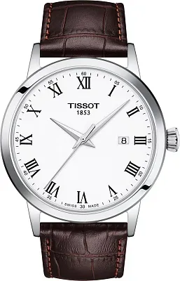 Откройте для себя элегантность и точность с моделью Tissot Classic Dream — это мужские оригинальные часы, которые станут идеальным дополнением как к строгому деловому костюму, так и к повседневному образу. Эти швейцарские часы оснащены кварцевым механизмом, калибр 111/2′′′, диаметр которого составляет 25,6 мм. Корпус круглой формы изготовлен из высококачественной нержавеющей стали 316L, а циферблат черного цвета защищен устойчивым к царапинам сапфировым стеклом. На циферблате использованы римские индексы. Часы обладают индикацией EOL (индикатор окончания срока службы батареи). Толщина корпуса — 8,05 мм, а диаметр (длина и ширина) — 42,0 мм. Расстояние между ушками составляет 22,0 мм. Модель комплектуется браслетом из нержавеющей стали серого цвета с застежкой-бабочкой с кнопками. Вес часов — 139 г. Уровень водозащиты 50 метров (5 АТМ/bar): выдерживают мытье рук, попадание крупных капель.