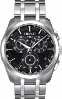 Tissot Couturier Chronograph — мужские оригинальные часы, которые выражают свой эксклюзивный характер через бескомпромиссное внимание к деталям, оставаясь актуальными независимо от модных тенденций. Подобно творениям великих кутюрье, эти швейцарские часы сочетают элегантность линий с тщательно подобранными материалами. Круглый корпус из нержавеющей стали 316L имеет диаметр 41 мм, толщину 10,95 мм и вес 182 г. Внутри установлен швейцарский кварцевый механизм (калибр 13 1/4''', диаметр 29,8 мм) на батарее Renata 394. Функции хронографа: центральная 60-секундная стрелка, счетчики на 30 минут и 1/10 секунды, а также ADD и SPLIT. Черный циферблат с индексами защищен устойчивым к царапинам сапфировым стеклом. На стрелках нанесено люминесцентное покрытие Super-LumiNova. Часы комплектуются стальным браслетом серого цвета с застежкой «бабочка» с кнопками. Водозащита 100 метров (10 АТМ/bar): подходят для плавания и погружения на глубину 5-7 м (выдвигать заводную головку и нажимать кнопки, находясь в воде, нельзя).