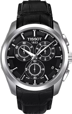 Tissot Couturier Chronograph — мужские оригинальные часы, которые выражают свой эксклюзивный характер через бескомпромиссное внимание к деталям, оставаясь актуальными независимо от модных тенденций. Подобно творениям великих кутюрье, эти швейцарские часы сочетают элегантность линий с тщательно подобранными материалами. Круглый корпус из нержавеющей стали 316L имеет диаметр 41 мм, толщину 10,95 мм и вес 182 г. Внутри установлен швейцарский кварцевый механизм (калибр 13 1/4''', диаметр 29,8 мм) на батарее Renata 394. Функции хронографа: центральная 60-секундная стрелка, счетчики на 30 минут и 1/10 секунды, а также ADD и SPLIT. Черный циферблат с индексами защищен устойчивым к царапинам сапфировым стеклом. На стрелках нанесено люминесцентное покрытие Super-LumiNova. Часы комплектуются стальным браслетом серого цвета с застежкой «бабочка» с кнопками. Водозащита 100 метров (10 АТМ/bar): подходят для плавания и погружения на глубину 5-7 м (выдвигать заводную головку и нажимать кнопки, находясь в воде, нельзя).