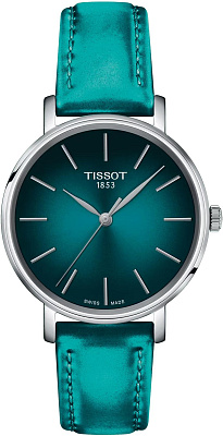 Погрузитесь в мир безупречного стиля с оригинальными часами Tissot Everytime Lady, артикул T143.210.17.091.00 — это лаконичный, чистый и шикарный аксессуар, который соответствует предпочтениям покупателей, позволяя выразить свою индивидуальность благодаря разнообразию оформления циферблатов и вариантов ремешков. Эти женские часы работают от точного швейцарского кварцевого механизма калибра 10 1/2''' диаметром 23.3 мм, питающегося от надежной батареи Renata 371. Корпус часов круглой формы изготовлен из высококачественной нержавеющей стали 316L и дополнен устойчивым к появлению царапин сапфировым стеклом. При толщине всего 6.92 мм и диаметре 34 мм часы имеют вес 33 г. Циферблат привлекает внимание градиентным переходом из бирюзового в черный цвет и размечен индексами. Ремешок изготовлен из синтетического материала, его длина составляет 105 мм со стороны «6 часов» и 70 мм со стороны «12 часов», а ширина ушка — 16 мм. Благодаря системе быстрой замены ремешка вы можете менять его без дополнительных инструментов, обеспечивая максимальную универсальность. Водонепроницаемость модели составляет 50 метров (5 АТМ/bar): выдерживают мытье рук, попадание крупных капель.