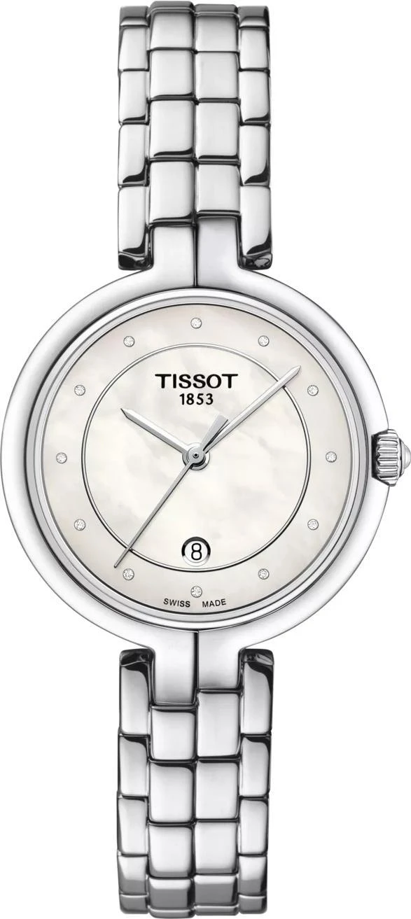 Женские часы Tissot Flamingo T094.210.11.116.01. Точный кварцевый механизм с аналоговой индикацией. Корпус изготовлен из высококачественной нержавеющей стали 316L с высокими антикоррозийными свойствами. Браслет из нержавеющей стали. Цвет корпуса: Серебристый. Цвет циферблата: Белый. Ширина (с заводной головкой): 30мм. Толщина: 6мм. Гарантия: 2 года.
