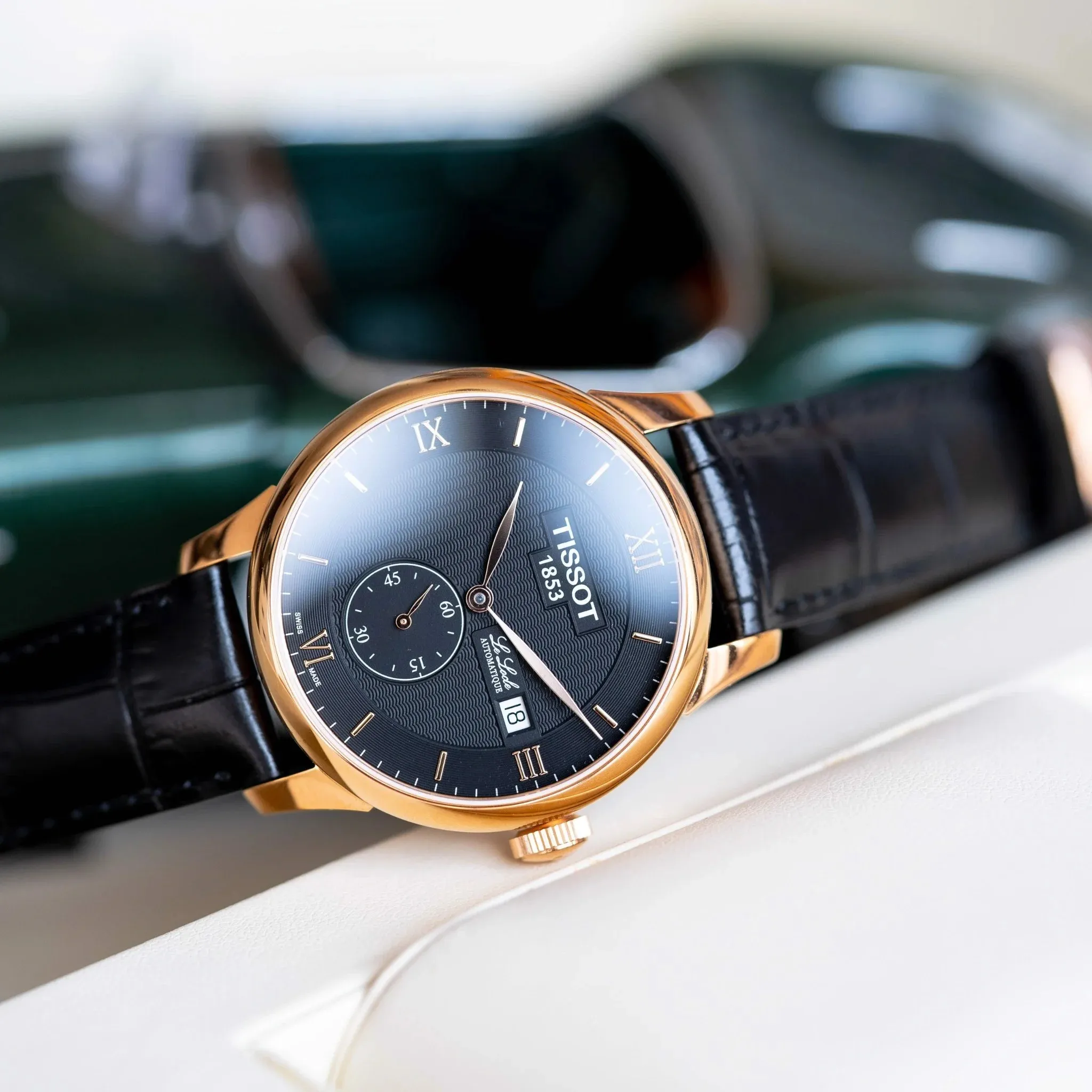 Мужские наручные часы Tissot Le Locle T006.428.36.058.01. Механические с ручным подзаводом. Корпус изготовлен из высококачественной нержавеющей стали 316L с высокими антикоррозийными свойствами. На циферблате отображается текущее число месяца. Ремешок изготовлен из кожи. Сапфировое стекло. Искусственно изготовленное стекло с высокой прочностью и устойчивостью к царапинам. Часы являются водонепроницаемыми до 3 Бар. Цвет корпуса: Розовое золото. Цвет циферблата: Черный. Гарантия: 2 года.