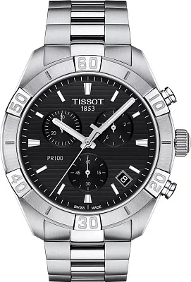 Выбирая мужские оригинальные часы, обратите внимание на модель Tissot PR 100 Sport Gent Chronograph. Эти швейцарские часы воплощают спортивный шик, подходящий для повседневного образа, и сохраняют тот простой, элегантный дизайн, за который ценится вся коллекция. Корпус круглой формы диаметром 44 мм и толщиной 11,11 мм выполнен из нержавеющей стали 316L, а вес часов составляет 169 г. Циферблат черного цвета защищен устойчивым к царапинам сапфировым стеклом и размечен индексами с люминесцентным покрытием Super-LumiNova, что придает часам элегантный и уникальный штрих. Благодаря надежному кварцевому механизму швейцарского производства (калибр 13 1/4''' — диаметр 29,8 мм) с функцией EOL (индикация окончания срока службы батареи) и питанием от батареи Renata 394, эти часы оснащены полноценным хронографом с центральной 60-секундной стрелкой, 30-минутным и 1/10-секундным счетчиками, а также функциями ADD и SPLIT. Браслет из нержавеющей стали серого цвета оснащен застежкой-бабочкой с кнопками. Водозащита 100 метров (10 АТМ/bar): подходят для плавания и погружения на глубину 5-7 м (выдвигать заводную головку и нажимать кнопки, находясь в воде, нельзя).