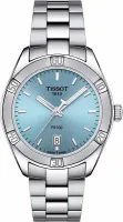 Представляем вам оригинальные часы Tissot PR 100 Sport Chic Lady — T101.910.11.351.00, воплощающие классику и предназначенные для частого ношения, идеально подходящие на любой случай. Эти швейцарские часы сохраняют простой и элегантный вид, за который так ценится коллекция, а лаконичная эстетика символизирует роскошь, качество и нестареющий стиль, что делает эти женские часы превосходным выбором. Корпус круглой формы изготовлен из высококачественной нержавеющей стали 316L, а браслет из нержавеющей стали серого цвета оснащен раскладывающейся застежкой с кнопками, что обеспечивает надежность и комфорт. Внутри корпуса диаметром 36 мм и толщиной 9 мм находится точный швейцарский кварцевый механизм калибра 10 1/2''' с диаметром 23.3 мм, работающий от батареи типа Renata 371. Вес изделия составляет 112 граммов, а ширина ушка — 18 мм. Циферблат нежно-голубого, или, как его еще называют, «ледяного синего» цвета украшен индексами, а стрелки покрыты люминесцентным составом Super-LumiNova для идеальной читаемости в темноте. Защиту циферблата обеспечивает устойчивое к царапинам сапфировое стекло с антибликовым покрытием. Модель обладает уровнем водозащиты 100 метров (10 АТМ/bar): подходят для плавания и погружения на глубину 5–7 м (выдвигать заводную головку и нажимать кнопки, находясь в воде, нельзя).