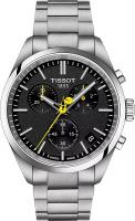 Представляем мужские оригинальные часы Tissot PR 100 Tour de France — это специальная серия, корпус которой выполнен из прочной и стойкой к износу нержавеющей стали 316L, гарантирующей сохранение привлекательности часов даже в суровых условиях, а задняя крышка украшена гравировкой с логотипом Тур де Франс. Циферблат черного цвета имеет тематическое асфальтовое зернение, которое отражает дорогу под колесами велосипедистов, а секундная стрелка выполнена в знаковом желтом цвете «Тур де Франс» и искусно имитирует велосипед. Черный диск окошка даты добавляет элегантности, гармонируя с общей эстетикой модели, а для лучшей видимости в условиях недостаточной освещенности на стреловидные стрелки нанесено покрытие Super-LumiNova. Точность и надежность хода обеспечивает швейцарский кварцевый механизм G10.212 с калибром 13 1/4''' и диаметром 29,8 мм, с функцией EOL (индикатор заряда батареи), а также с центральной 60-секундной стрелкой хронографа и счетчиками на 30 минут и 1/10 секунды, а также функциями ADD и SPLIT. Швейцарские часы имеют круглый корпус с габаритами 40x40 мм и толщиной 11,26 мм, и оснащены устойчивым к царапинам сапфировым стеклом. Универсальность модели PR100 усиливается за счет трехрядного металлического браслета из нержавеющей стали серого цвета с застежкой-бабочкой с кнопками, а также предусмотрена возможность быстрой замены браслета. Вес часов составляет 135 г, а водозащита 100 метров (10 АТМ/bar): подходят для плавания и погружения на глубину 5–7 м (выдвигать заводную головку и нажимать кнопки, находясь в воде, нельзя).