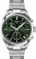 Встречайте Tissot PR 100 Chronograph — идеальные мужские часы для тех, кто ценит сочетание спортивного стиля и классической элегантности. Эти оригинальные часы станут надежным аксессуаром на каждый день, подчеркивая ваш безупречный вкус. Коллекция PR100 предлагает классические кварцевые хронографы в различных цветах. Эти спортивные, но в то же время стильные часы отличаются полированным центральным рядом на браслете для более блестящего вида, белым диском в окошке даты и стандартной секундной стрелкой. Точность и прочность обеспечивает хронокварцевый механизм G10.212, дополненный водонепроницаемостью до 10 бар (100 метров / 330 футов), а видимость в условиях недостаточной освещенности гарантирована покрытием Super-LumiNova на стреловидных стрелках. Модель оснащена швейцарским кварцевым механизмом с индикатором заряда батареи EOL (End-of-Life), калибр которого составляет 13 1/4''' и имеет диаметр 29,8 мм. Функционал включает в себя 30-минутный и 1/10-секундный счетчики, центральную 60-секундную стрелку хронографа, а также функции ADD и SPLIT. Корпус часов круглой формы изготовлен из нержавеющей стали 316L, его длина и ширина составляют 40 мм, а толщина — 11,26 мм. Вес часов — 135 г. Циферблат зеленого цвета с индексами и люминесцентным покрытием Super-LumiNova на стрелках защищен устойчивым к царапинам сапфировым стеклом. Водонепроницаемость 100 метров (10 АТМ/bar): подходят для плавания и погружения на глубину 5-7 м (выдвигать заводную головку и нажимать кнопки, находясь в воде, нельзя). Браслет из нержавеющей стали серого цвета оснащен застежкой-бабочкой с кнопками.