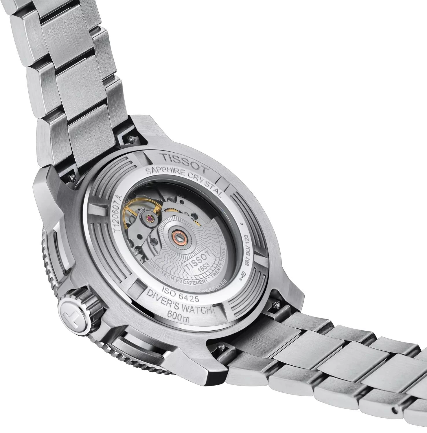 Привнесите уверенность в свой образ и найдите баланс, куда бы вы ни отправились, с оригинальными часами Tissot Seastar 2000 Professional Powermatic 80 на запястье. Эта высокотехнологичная мужская модель, произведенная в Швейцарии, излучает спокойную уверенность, будь то глубокие городские джунгли или сотни метров под поверхностью моря. Обладая стильным профилем, это универсальный аксессуар, который можно носить каждый день. Но благодаря своей внушительной архитектуре, водонепроницаемости до 60 бар (600 м/2000 футов) и сертификации ISO 6425 (2018) для часов для дайвинга, это также надежный инструмент, на который можно положиться, когда это нужно больше всего. В часах можно плавать, погружаться с аквалангом на глубину 150 метров. Корпус имеет круглую форму, изготовлен из нержавеющей стали 316L, дополнен керамическим безелем, имеет антигелиевый клапан, вращающийся против часовой стрелки безель, завинчивающуюся заводную головку и заднюю крышку, а также прозрачную заднюю крышку с сапфировым стеклом. Стекло— куполообразный, устойчивый к царапинам сапфир с антибликовым покрытием. Внутри находится швейцарский автоматический механизм калибра 11 1/2''' диаметром 25,6 мм с запатентованной спиралью баланса Nivachron, обеспечивающий запас хода до 80 часов. Диаметр корпуса составляет 46 мм, толщина — 16,25 мм, а ширина ушка — 22 мм. Часы весят 206 г, оснащены циферблатом с градиентом сине-черного цвета с индексами и люминесцентным покрытием Super-LumiNova на корпусе и стрелках. Стальной браслет серого цвета имеет складную застежку с фиксатором, удлинением для дайвера и кнопками, а также систему быстрой замены.