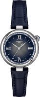Эти элегантные женские часы Tissot Desir, артикул T152.010.16.038.01, изготовлены в Швейцарии — родине высокоточных часовых механизмов, и являются прекрасным примером оригинальных часов с неподвластным времени дизайном. Отличительная черта коллекции — куполообразный корпус, напоминающий тонко ограненный драгоценный камень. Эти швейцарские часы спроектированы с учетом как комфорта, так и долговечности, очаровывают своей красотой и созданы, чтобы выдержать испытание временем. Круглый корпус часов, диаметр которого составляет 28 мм, а толщина — 7,68 мм, выполнен из нержавеющей стали 316L, известной своей прочностью. Циферблат градиентного серебристо-синего цвета защищен устойчивым к царапинам сапфировым стеклом с куполообразной формой. Индикация времени осуществляется римскими цифрами и индексами. Внутри находится надежный кварцевый механизм Swiss quartz калибра 8 3/4''' с функцией EOL (индикатор окончания срока службы батареи), который обеспечит вам несравненную точность хода. Механизм, совершенствуемый Tissot, гарантирует, что этот аксессуар будет вашим неизменным спутником в любом путешествии на долгие годы. Вес часов составляет всего 31 г, что делает их практически неощутимыми на запястье. Часы комплектуются синим кожаным ремешком с застежкой-бабочкой с кнопками. Водонепроницаемость 50 метров (5 АТМ/bar): выдерживают мытье рук, попадание крупных капель.