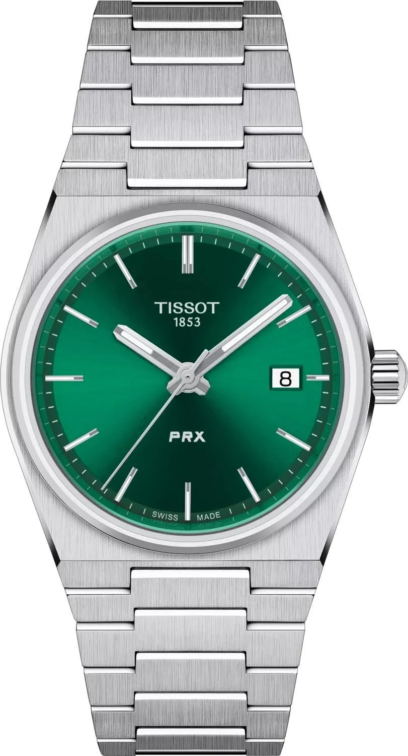 Представляем вашему вниманию оригинальные часы Tissot PRX 35mm T137.210.11.081.00. PRX — это часы для тех, кто ценит дизайн и изобретательность. Они обладают изысканным, неподвластным времени ретрообразом. Утонченный и тонкий корпус бочкообразной формы из нержавеющей стали 316L, а также прочный стальной браслет делают эти швейцарские часы не только иконой прошлого, но и современным аксессуаром для людей всех возрастов. Новый PRX имеет диаметр 35 мм, что в точности соответствует размеру оригинальной модели 1978 года, делая их еще более желанными. Эти женские часы оснащены высокоточным швейцарским кварцевым механизмом (калибр 10 1/2''' или 23.3 мм) с функцией EOL (индикатором окончания срока службы батареи), работающим от элемента питания Renata 371. Отличительная зеленая цветовая гамма циферблата с индексами и люминесцентным покрытием Super-LumiNova на стрелках обеспечивает отличную читаемость. Корпус часов имеет длину 34.6 мм, ширину 35 мм и толщину 9.6 мм, при этом вес изделия составляет 97 г. Стекло выполнено из устойчивого к появлению царапин сапфирового кристалла. Водозащита 100 метров (10 АТМ/bar): подходят для плавания и погружения на глубину 5-7 м (выдвигать заводную головку и нажимать кнопки, находясь в воде, нельзя). Браслет серого цвета из нержавеющей стали с ушком 11 мм оснащен застежкой-бабочкой с кнопками и имеет систему быстрой замены.