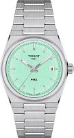 Почувствуйте ностальгию и современную элегантность с оригинальными часами Tissot PRX 35mm Quartz, артикул T137.210.11.091.00 — моделью, вдохновленной легендарным дизайном 1978 года. Эти женские часы являются идеальным выбором для тех, кто ценит утонченный ретростиль и смелый дизайн, ведь они полностью повторяют точный размер своего предшественника — 35 мм в диаметре. Тонкий корпус бочкообразной формы, выполненный из высококачественной нержавеющей стали 316L, плавно переходит в эргономичный интегрированный браслет стального цвета с удобной застежкой-бабочкой с кнопками и возможностью быстрой замены, что делает эту модель одновременно знаковой и современной. Швейцарские часы оснащены надежным кварцевым механизмом (калибр 10 1/2''' или 23.3 мм) с функцией EOL, указывающей на окончание срока службы батареи типа Renata 371. Вес изделия составляет 97 г, а его габариты — длина 34.6 мм, ширина 35 мм и толщина 9.6 мм. Яркий светло-зеленый циферблат с индексами защищен устойчивым к царапинам сапфировым стеклом, а для лучшей читаемости в темноте на стрелки нанесен люминесцентный состав Super-LumiNova. Защита от воды у этой модели составляет 100 метров (10 АТМ/bar): они подходят для плавания и погружения на глубину 5–7 м (выдвигать заводную головку и нажимать кнопки, находясь в воде, нельзя).