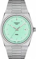 Представляем вашему вниманию оригинальные часы Tissot PRX 40mm — стильную мужскую модель, корпус которой имеет форму бочки и выполнен из нержавеющей стали 316L, а ширина составляет 40,0 мм при толщине 10,4 мм, с расстоянием между ушками 12,0 мм. Внутри этих швейцарских часов установлен надежный кварцевый механизм Swiss quartz калибра 11 1/2''' с диаметром 25,6 мм и функцией EOL (индикатор заряда батареи), который работает от батареи Renata 371, обеспечивая точность хода. Циферблат светло-зеленого цвета оснащен индексами, а стрелки покрыты люминесцентным материалом Super-LumiNova. Защиту циферблата обеспечивает устойчивое к появлению царапин сапфировое стекло. Водонепроницаемость составляет 100 метров (10 АТМ/bar): они подходят для плавания и погружения на глубину 5-7 м (выдвигать заводную головку и нажимать кнопки, находясь в воде, нельзя). Модель дополнена серым браслетом из нержавеющей стали с быстросъемной системой и застежкой-бабочкой с кнопками, что делает ношение максимально комфортным. Tissot PRX T137.410.11.091.01 — это часы, которые прекрасно сочетают в себе стиль и функциональность; эта модель основывается на оригинальной модели Tissot PRX, которая была создана в 1978 году и была первой в своем роде благодаря кварцевому механизму, который обеспечивает точность и надежность хода.