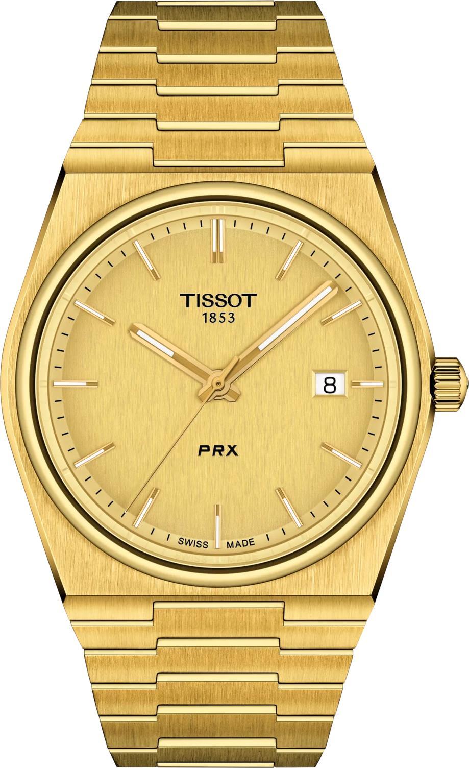 Идеальный выбор для тех, кто ценит стиль и качество, — мужские оригинальные часы Tissot PRX 40mm с артикулом T137.410.33.021.00. Эти швейцарские часы оснащены надежным кварцевым механизмом, калибр 11 1/2''', с индикатором заряда батареи EOL (end-of-life), который использует элемент питания Renata 371. Корпус бочкообразной формы, характерный для модели, выполнен из нержавеющей стали 316L с PVD-покрытием цвета желтого золота. Диаметр корпуса составляет 40 мм, длина — 39,5, а толщина — 10,4. Модель имеет устойчивое к появлению царапин сапфировое стекло. Циферблат цвета шампанского с индексами обеспечивает отличную читаемость, благодаря люминесцентному покрытию Super-LumiNova на стрелках. Ширина ушка составляет 12 мм. Браслет из нержавеющей стали с PVD-покрытием в цвете Yellow Gold 1N14, оснащен застежкой-бабочкой с кнопками, а также имеет систему быстрой замены. Уровень водозащиты 100 метров (10 АТМ/bar): подходят для плавания и погружения на глубину 5–7 м (выдвигать заводную головку и нажимать кнопки, находясь в воде, нельзя).
