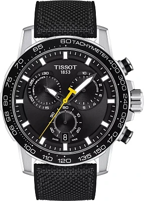 Встречайте оригинальные часы Tissot Supersport Chrono — брутальные мужские часы, созданные для активного образа жизни, сочетающие в себе спортивный стиль, надежность и современные технологии. Круглый корпус диаметром 45,5 мм и толщиной 11,92 мм выполнен из высококачественной нержавеющей стали 316L и дополнен алюминиевым кольцом безеля, подчеркивающим динамичный дизайн. Защиту циферблата черного цвета с индексами обеспечивает устойчивое к появлению царапин сапфировое стекло. Точность хода гарантирует надежный швейцарский кварцевый механизм с калибром 13 1/4''' (диаметр 29,8 мм) с индикатором заряда батареи EOL, который питается от батарейки Renata 394. Функциональность модели расширена благодаря хронографу с центральной 60-секундной стрелкой и счетчиками на 30 минут и 1/10 секунды, а также функциям ADD и SPLIT. На стрелках нанесено люминесцентное покрытие Super-LumiNova, обеспечивающее отличную читаемость показаний в темноте. Водозащита 100 метров (10 АТМ/bar) подходит для плавания и погружения на глубину 5-7 м (выдвигать заводную головку и нажимать кнопки, находясь в воде, нельзя). Черный текстильный ремешок шириной 22 мм с стандартной застежкой оснащен системой быстрой замены. Длина ремешка составляет 118,1 мм со стороны «6 часов» и 71,1 мм со стороны «12 часов». Эти часы станут идеальным выбором для ценителей качества и функциональности.