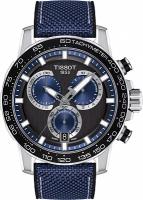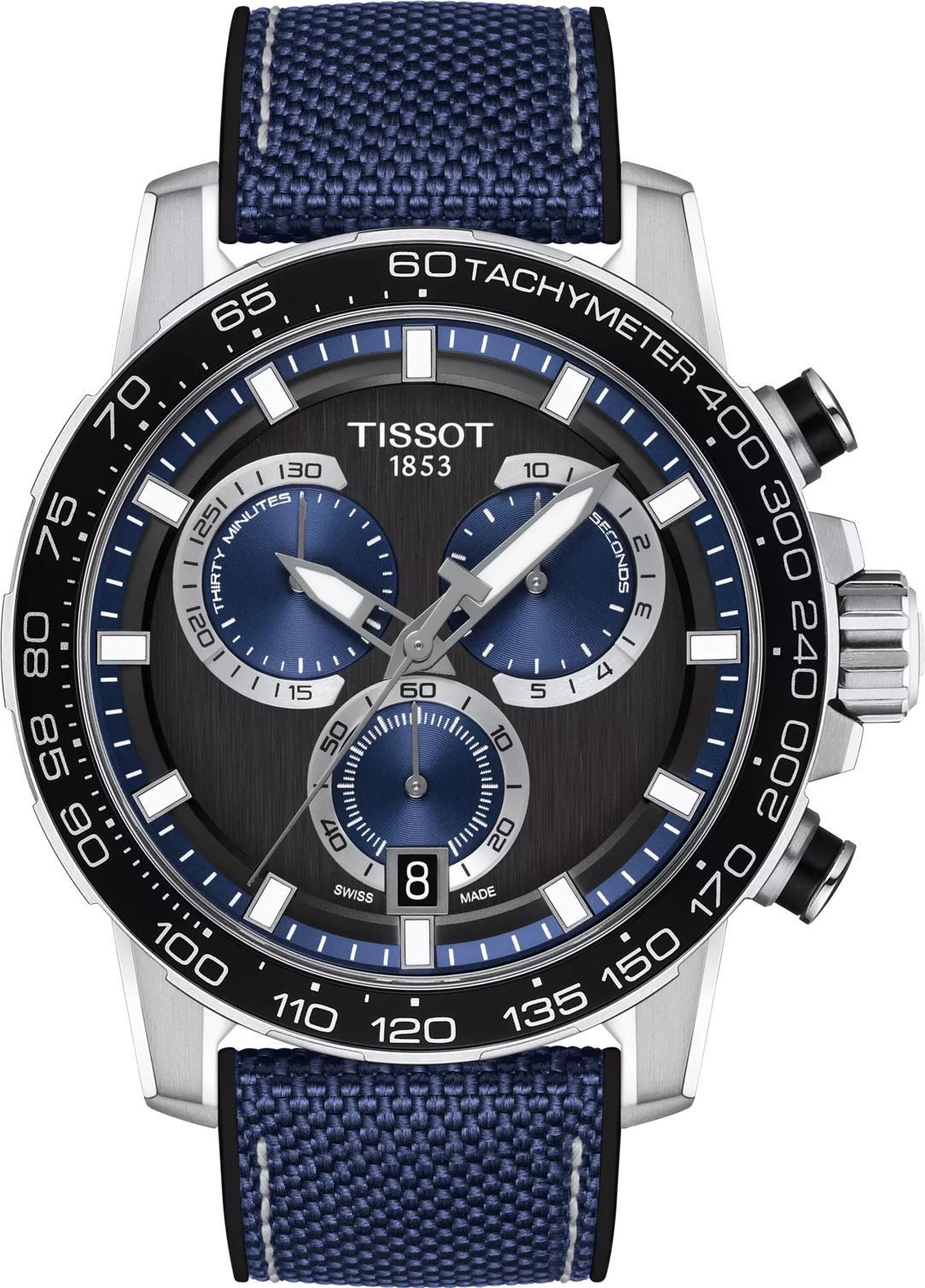 Откройте для себя мужские оригинальные часы Tissot Supersport Chrono — идеальное сочетание спортивного стиля и швейцарского качества. Эти швейцарские часы с артикулом T125.617.17.051.03 обладают круглым корпусом из нержавеющей стали 316L, дополненным алюминиевым безелем, что придает модели динамичный вид. Размеры корпуса составляют 45,5 x 45,5 мм, а толщина — 11,92 мм. Защиту черного циферблата с индексами обеспечивает устойчивое к царапинам сапфировое стекло. Сердце часов — швейцарский кварцевый механизм калибра 13 1/4′′ с диаметром 29,8 мм, работающий от батареи Renata 394 и оснащенный индикатором окончания срока службы батареи (EOL). Функционал включает хронограф с центральной 60-секундной стрелкой, 30-минутным и 1/10-секундным счетчиками, а также функциями ADD и SPLIT. Стрелки покрыты люминесцентным составом Super-LumiNova для отличной читаемости. Часы поставляются с черным/синим текстильным ремешком шириной 22 мм с стандартной застежкой и системой быстрой замены. Водонепроницаемость 100 метров (10 АТМ/bar): подходят для плавания и погружения на глубину 5-7 м (выдвигать заводную головку и нажимать кнопки, находясь в воде, нельзя).