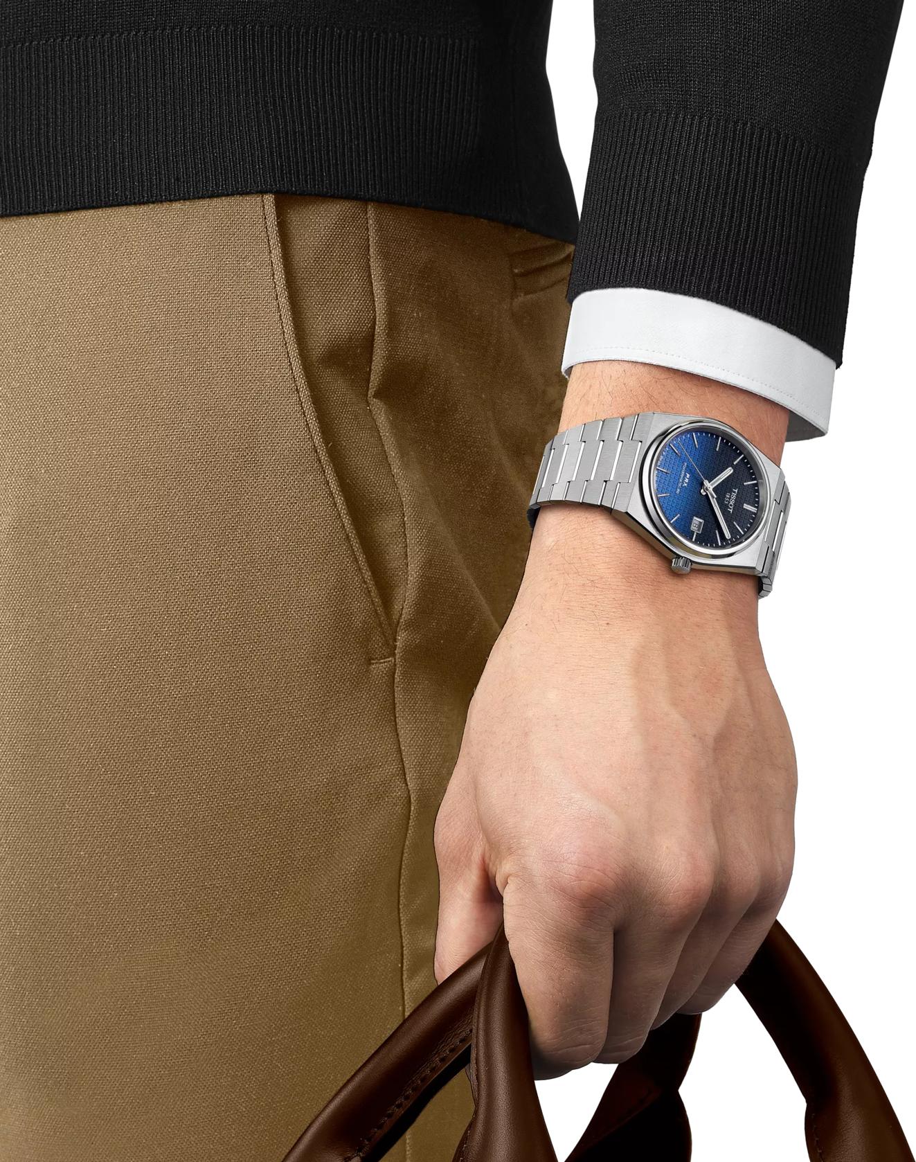 Выбирая Tissot PRX Powermatic 80 Gradient 40mm, вы получаете не просто аксессуар, а идеального спутника для современного человека, ценящего функциональность и безупречный стиль. Часы обладают впечатляющим градиентным циферблатом "Черный хамелеон" с индексами, который невероятно играет со светом и цветом, создавая потрясающий эффект и предлагая яркую цветовую гамму. Модель имеет корпус бочкообразной формы ("Tonneau shape") из нержавеющей стали 316L со специальной прозрачной задней крышкой, позволяющей любоваться работой механизма. Размеры корпуса составляют 39,5 мм в длину, 40 мм в ширину и 10,93 мм в толщину. Стекло — это устойчивый к царапинам сапфировый кристалл с антибликовым покрытием, сочетающий красоту и качество: его исключительная твердость, уступающая только алмазу, гарантирует долговечность и отличную читаемость. Часы оснащены швейцарским автоматическим механизмом, который обеспечивает запас хода до 80 часов. Диаметр калибра 11 1/2''' составляет 25,6 мм. Для улучшения характеристик используется запатентованная балансовая пружина Nivachron, которая противодействует влиянию магнитных полей, а также устойчива к ударам, старению и перепадам температур. Водозащита 100 метров (10 АТМ/bar): подходят для плавания и погружения на глубину 5-7 м (выдвигать заводную головку и нажимать кнопки, находясь в воде, нельзя). Стрелки покрыты люминесцентным составом Super-LumiNova. Часы комплектуются браслетом из нержавеющей стали серого цвета с застежкой-бабочкой с кнопками и оснащены быстросъемным механизмом, позволяющим менять браслет. Вес этой модели составляет 138 г.