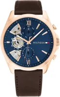 . Точный кварцевый механизм с аналоговой индикацией. В отличие от механических часов, не требуют завода и работают от батареи, показывая отклонение всего несколько секунд в месяц. Ремешок изготовлен из кожи. Гибкость такого ремешка позволяет точно регулировать посадку часов на руке. Отображение времени возможно в 12-часовом или 24-часовом формате. Корпус изготовлен из высококачественной нержавеющей стали 316L с высокими антикоррозийными свойствами. Прочное, устойчивое к царапинам минеральное стекло защищает часы от повреждений. Часы являются водонепроницаемыми до 5 Бар. Цвет корпуса: Розовое золото. Цвет циферблата: Синий. Высота (с ушками): 44 мм. Толщина: 10 мм. Гарантия: 1 год.