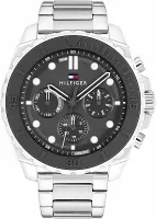 Мужские спортивные часы Tommy Hilfiger 1710689 с кварцевым механизмом сочетают динамичный дизайн и многофункциональность. Модель с массивным корпусом из нержавеющей стали (48 мм) демонстрирует черный циферблат с практичными индикаторами дня недели, даты и 24-часовой шкалой. Люминесцентное покрытие стрелок и индексов обеспечивает четкую видимость в условиях слабого освещения. Широкий 24-миллиметровый стальной браслет гармонично дополняет облик часов, а водонепроницаемость 5 атмосфер (50 метров) защищает от брызг и дождя, делая эту модель идеальным выбором для активного образа жизни и повседневной носки.