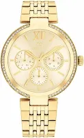 Женские часы Tommy Hilfiger 1782697 — это роскошный аксессуар, созданный для особых моментов. Модель с позолоченным корпусом из нержавеющей стали диаметром 36 мм украшена сверкающими кристаллами и циферблатом с узором «солнечный луч». Функциональность сочетается с элегантностью: часы отображают дату, день недели и поддерживают 12/24-часовой формат времени. Прочное минеральное стекло обеспечивает защиту циферблата, а водонепроницаемость 3 АТМ (30 метров) гарантирует устойчивость к брызгам и дождю. Изящный стальной браслет с золотистым покрытием завершает образ, делая эти часы идеальным выбором для вечерних выходов и торжественных мероприятий.