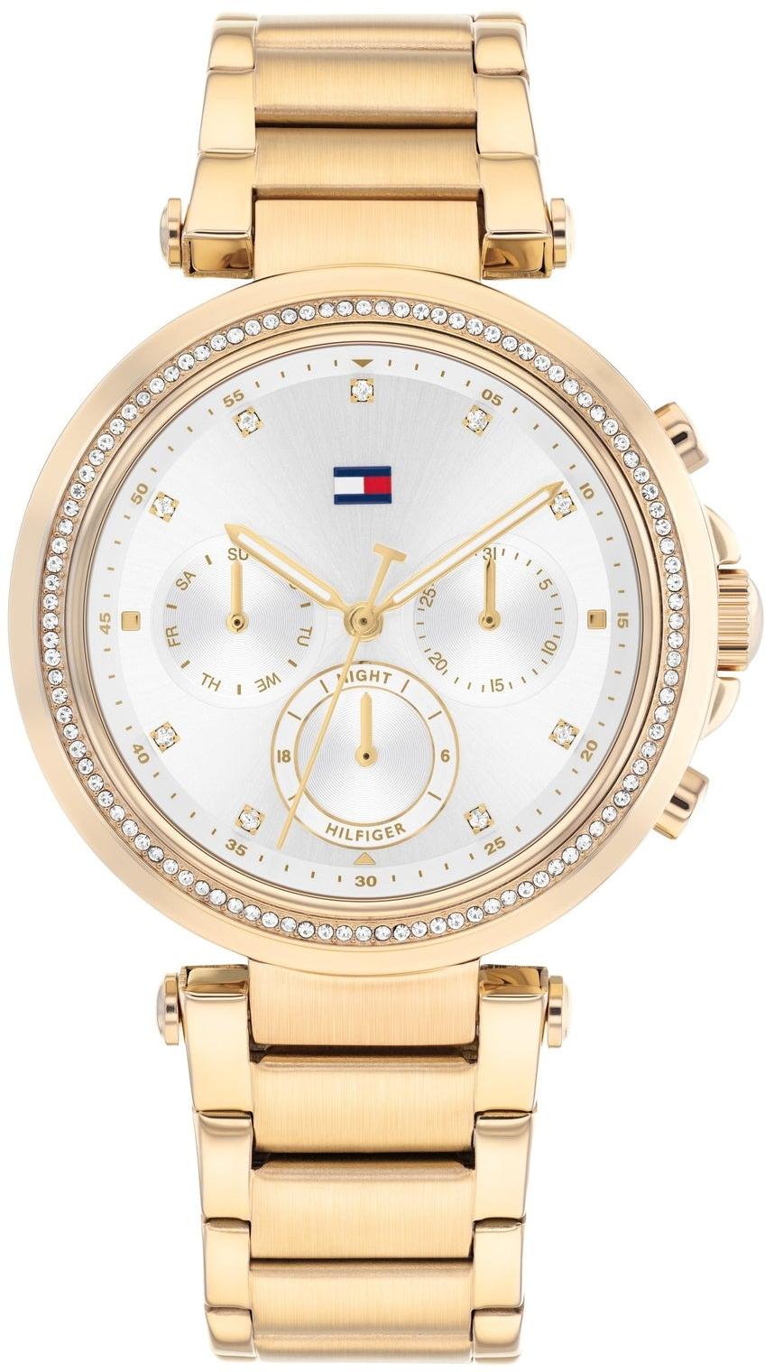 Женские часы Tommy Hilfiger 1782703 — это изысканное сочетание стильного дизайна и завораживающего блеска кристаллов, созданное для украшения вашего запястья. Модель с круглым стальным корпусом оснащена функциональными элементами: отдельными циферблатами для отображения времени в 24-часовом формате, даты и дня недели, а также метками в виде элегантных точек. Безель и циферблат украшены сверкающими кристаллами, добавляющими образу торжественности, а рифленая заводная головка обеспечивает удобство использования. Стальной браслет с раскладывающейся застежкой завершает образ, делая эти часы идеальным аксессуаром для современных женщин, ценящих гармонию функциональности и роскоши.