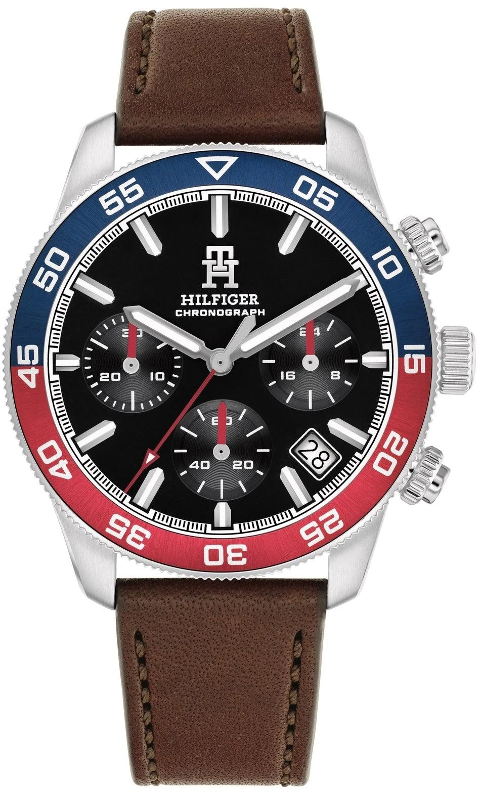 Сделайте смелое и стильное заявление с часами Tommy Hilfiger TH85 Pepsi Black Dial Men’s Watch 1792166 — это выдающийся аксессуар, сочетающий в себе культовый дизайн и повседневную функциональность. Часы с 41-миллиметровым корпусом из нержавеющей стали и строгим черным циферблатом подчеркнуты привлекательным безелем «Pepsi» — классической комбинацией красного и синего цветов, которая добавляет спортивный, вдохновленный ретро-стилем шарм. Функция хронографа обеспечивает точный ход, а индикация даты, расположенная между 4 и 5 часами, добавляет практичности для ежедневного ношения. Оснащенные японским кварцевым механизмом, часы гарантируют надежную работу и долговременную точность. Прочное устойчивое к царапинам минеральное стекло защищает циферблат, а водонепроницаемость 50 метров делает их подходящими для легких водных развлечений. Коричневый кожаный ремешок с штифтовой пряжкой дополняет общий вид изысканным контрастом, делая эти часы идеальными как для повседневной носки, так и для торжественных случаев. Как часть культовой коллекции Tommy Hilfiger TH85, модель 1792166 воплощает утонченную американскую эстетику с современными деталями. Независимо от того, обновляете ли вы свою коллекцию или делаете подарок близкому человеку, этот хронограф с безелем «Pepsi» предлагает timeless-привлекательность и современные функции. Испытайте стиль и надежность с этим обязательным аксессуаром от Tommy Hilfiger.