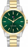 Мужские наручные часы Tommy Hilfiger 1792192 сочетают в себе функциональность и стильный внешний вид. Часы с кварцевым механизмом изготовлены из нержавеющей стали, их корпус имеет ширину 42 мм и толщину 10 мм. Оправа, стрелки, индексы и центральная часть браслета имеют золотистый цвет, что создает приятный контраст со стальным корпусом и браслетом. Зеленый циферблат защищен минеральным стеклом. Ширина двухцветного стального браслета от места крепления составляет 22 мм. Tommy Hilfiger 1792192 относятся к классу водонепроницаемости 50 м / 5 атм, то есть к ограниченно водонепроницаемым (плавание не рекомендуется).