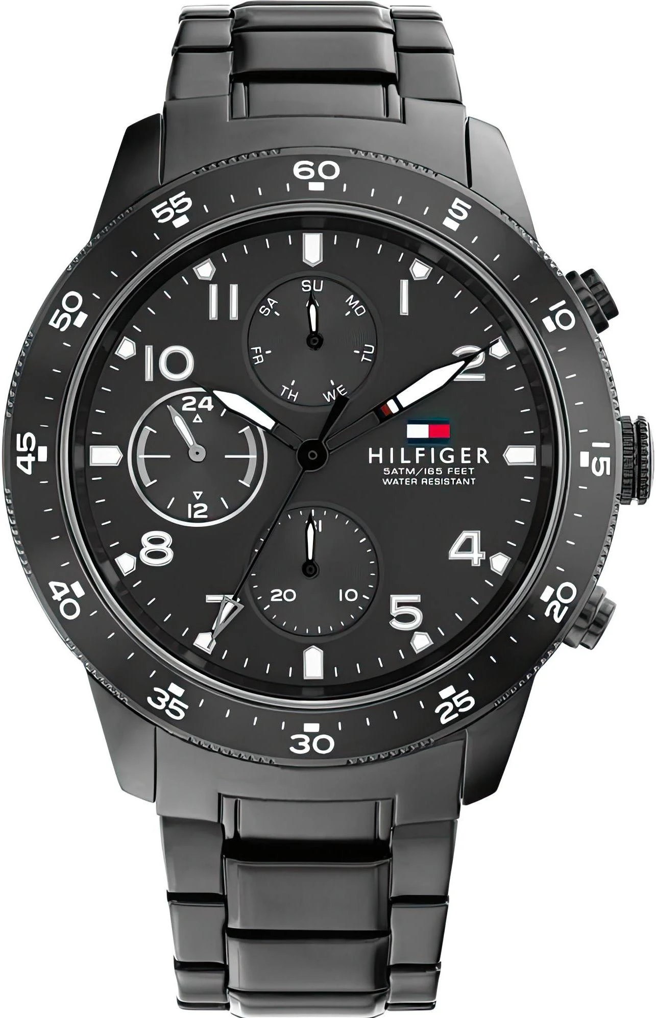 Мужские наручные часы Tommy Hilfiger Jimmy 1791951. Точный кварцевый механизм с аналоговой индикацией. Корпус изготовлен из высококачественной нержавеющей стали 316L с высокими антикоррозийными свойствами. На стрелки и отметки нанесен светонакопительный состав, благодаря этому считывать информацию с циферблата возможно и в темноте. На циферблате отображается текущее число месяца и день недели. Отображение времени возможно в 12-часовом или 24-часовом формате. Браслет из нержавеющей стали. Прочное, устойчивое к царапинам минеральное стекло защищает часы от повреждений. Часы являются водонепроницаемыми до 5 Бар. Цвет корпуса: Черный. Цвет циферблата: Черный. Ширина (с заводной головкой): 44мм. Толщина: 10мм. Гарантия: 1 год.