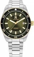 Мужские наручные часы Tommy Hilfiger Adrian 1792155. Механические с автоподзаводом. Пружина механизма заводится автоматически благодаря естественным движениям владельца в процессе ежедневной носки часов. На стрелки и отметки нанесен светонакопительный состав, благодаря этому считывать информацию с циферблата возможно и в темноте. Браслет из нержавеющей стали обладает высокой прочностью и износостойкостью, обеспечивая долговечность даже при активной эксплуатации. Материал устойчив к коррозии и сохраняет свой внешний вид надолго. Корпус изготовлен из высококачественной нержавеющей стали 316L с высокими антикоррозийными свойствами. Прочное, устойчивое к царапинам минеральное стекло защищает часы от повреждений. Часы являются водонепроницаемыми до 10 Бар. Цвет корпуса: Серебристый. Цвет циферблата: Зеленый. Высота (с ушками): 48 мм. Толщина: 13 мм. Гарантия: 1 год.