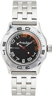 Мужские наручные часы Восток Амфибия 100474. Автоматические с ручным подзаводом. Пружина механизма заводится автоматически благодаря естественным движениям владельца в процессе ежедневной носки часов. Также есть возможность ручного завода. Корпус изготовлен из высококачественной нержавеющей стали 316L с высокими антикоррозийными свойствами. На стрелки и отметки нанесен светонакопительный состав, благодаря этому считывать информацию с циферблата возможно и в темноте. На циферблате отображается текущее число месяца. Браслет из нержавеющей стали. Органическое стекло. Часы являются водонепроницаемыми до 20 Бар. Цвет корпуса: Черный. Цвет циферблата: Черный. Ширина (с заводной головкой): 42мм. Толщина: 15мм. Гарантия: 1 год.