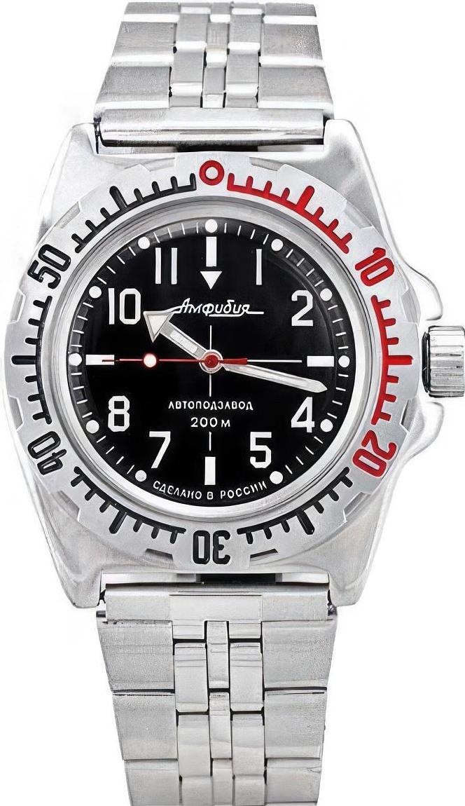 Мужские наручные часы Восток Амфибия 110647. Автоматические с ручным подзаводом. Пружина механизма заводится автоматически благодаря естественным движениям владельца в процессе ежедневной носки часов. Также есть возможность ручного завода. Корпус изготовлен из высококачественной нержавеющей стали 316L с высокими антикоррозийными свойствами. На стрелки и отметки нанесен светонакопительный состав, благодаря этому считывать информацию с циферблата возможно и в темноте. Браслет из нержавеющей стали. Органическое стекло. Часы являются водонепроницаемыми до 20 Бар. Цвет корпуса: Черный. Цвет циферблата: Черный. Ширина (с заводной головкой): 40мм. Толщина: 13мм. Гарантия: 1 год.