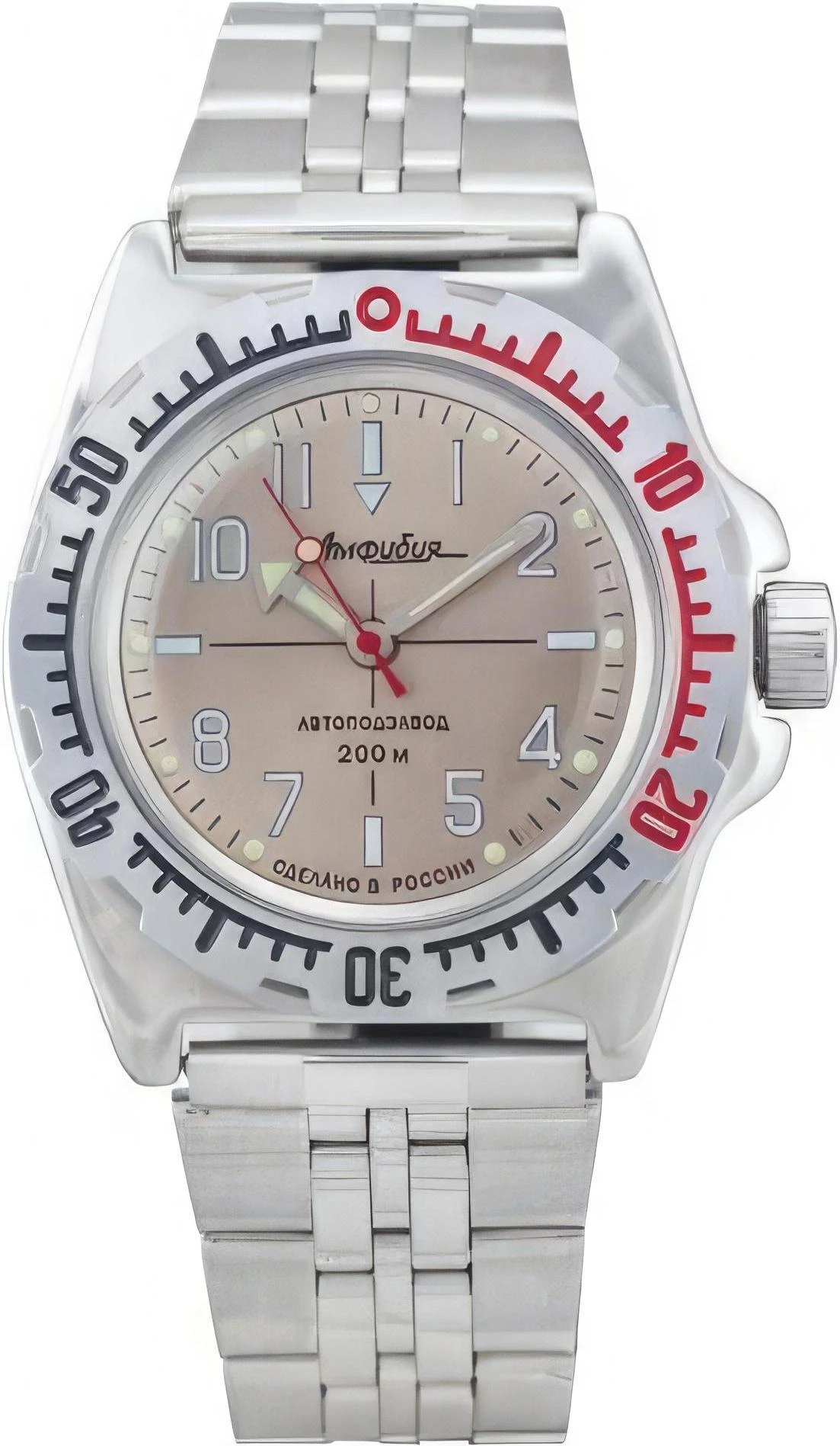 Мужские наручные часы Восток Амфибия 110649. Автоматические с ручным подзаводом. Пружина механизма заводится автоматически благодаря естественным движениям владельца в процессе ежедневной носки часов. Также есть возможность ручного завода. Корпус изготовлен из высококачественной нержавеющей стали 316L с высокими антикоррозийными свойствами. На стрелки и отметки нанесен светонакопительный состав, благодаря этому считывать информацию с циферблата возможно и в темноте. Браслет из нержавеющей стали. Органическое стекло. Часы являются водонепроницаемыми до 20 Бар. Цвет корпуса: Коричневый. Цвет циферблата: Серый. Ширина (с заводной головкой): 42мм. Толщина: 13мм. Гарантия: 1 год.