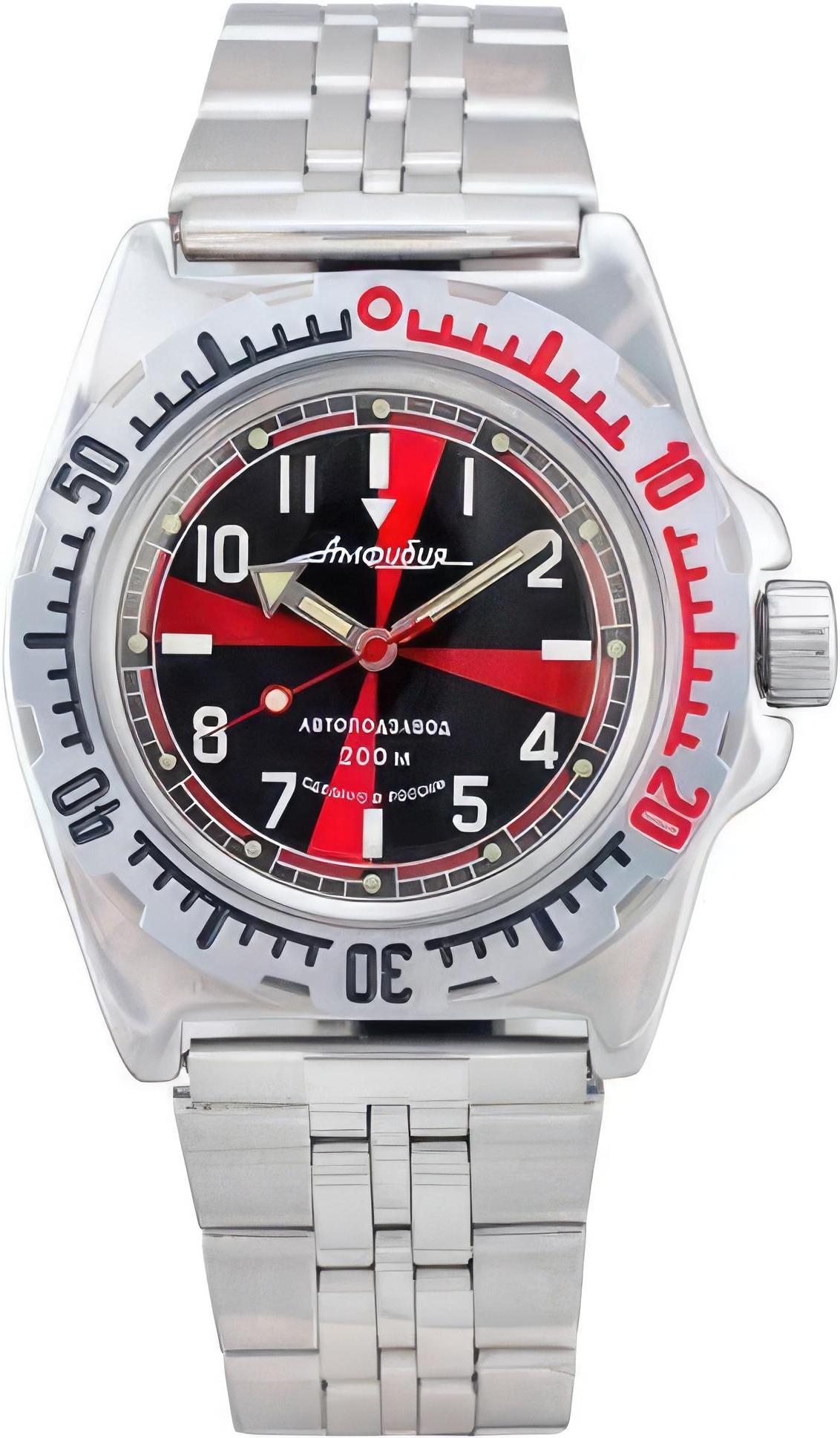 Мужские наручные часы Восток Амфибия 110650. Механические с автоподзаводом. Пружина механизма заводится автоматически благодаря естественным движениям владельца в процессе ежедневной носки часов. Корпус изготовлен из высококачественной нержавеющей стали 316L с высокими антикоррозийными свойствами. На стрелки и отметки нанесен светонакопительный состав, благодаря этому считывать информацию с циферблата возможно и в темноте. Браслет из нержавеющей стали. Органическое стекло. Часы являются водонепроницаемыми до 20 Бар. Цвет корпуса: Двухцветный. Ширина (с заводной головкой): 42мм. Толщина: 13мм. Гарантия: 1 год.