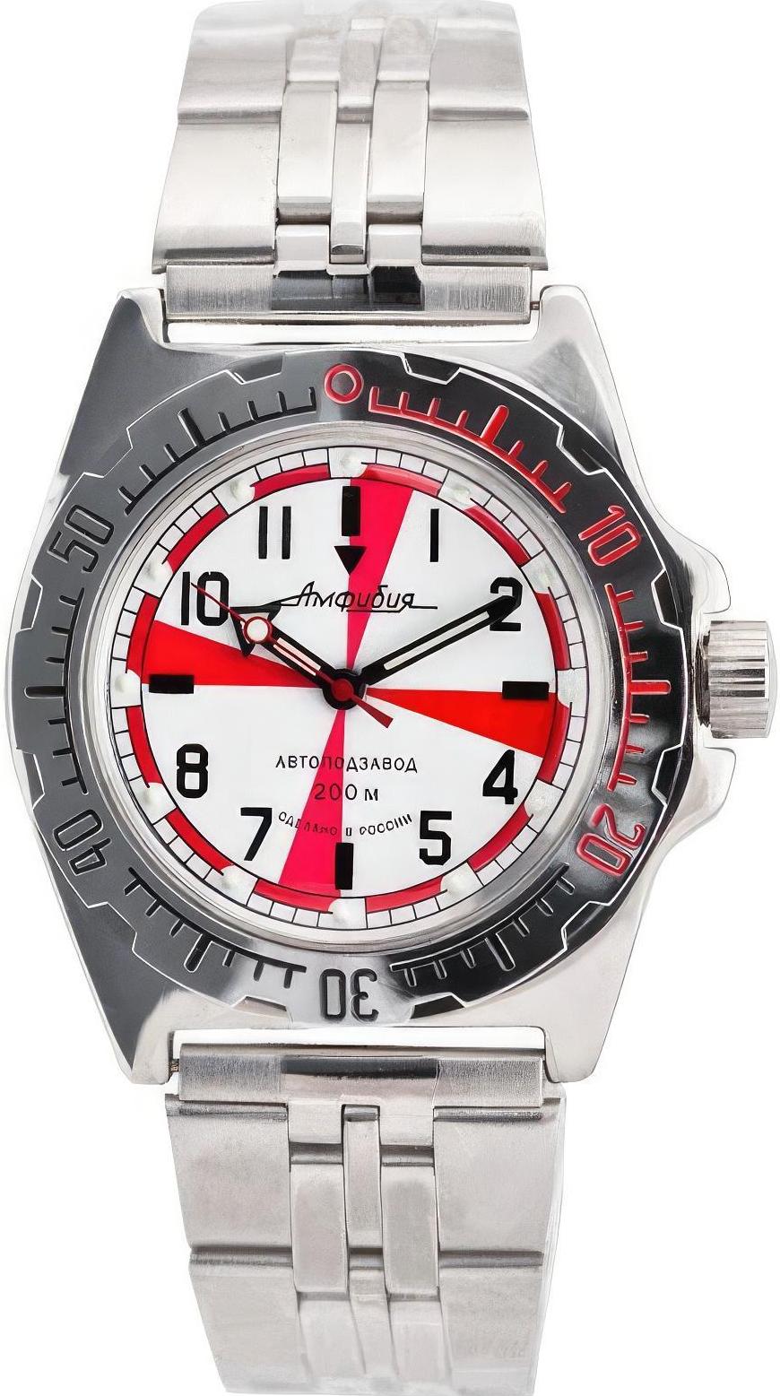 Мужские наручные часы Восток Амфибия 110750. Механические с автоподзаводом. Пружина механизма заводится автоматически благодаря естественным движениям владельца в процессе ежедневной носки часов. Корпус изготовлен из высококачественной нержавеющей стали 316L с высокими антикоррозийными свойствами. На стрелки и отметки нанесен светонакопительный состав, благодаря этому считывать информацию с циферблата возможно и в темноте. На циферблате отображается текущее число месяца. Браслет из нержавеющей стали. Органическое стекло. Часы являются водонепроницаемыми до 20 Бар. Цвет корпуса: Двухцветный. Ширина (с заводной головкой): 42мм. Толщина: 13мм. Гарантия: 1 год.