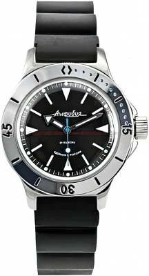 Мужские наручные часы Восток Амфибия 120509. Автоматические с ручным подзаводом. Пружина механизма заводится автоматически благодаря естественным движениям владельца в процессе ежедневной носки часов. Также есть возможность ручного завода. Корпус изготовлен из высококачественной нержавеющей стали 316L с высокими антикоррозийными свойствами. На стрелки и отметки нанесен светонакопительный состав, благодаря этому считывать информацию с циферблата возможно и в темноте. Браслет из нержавеющей стали. Органическое стекло. Часы являются водонепроницаемыми до 20 Бар. Цвет корпуса: Черный. Цвет циферблата: Черный. Ширина (с заводной головкой): 42мм. Толщина: 15мм. Гарантия: 1 год.