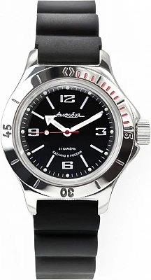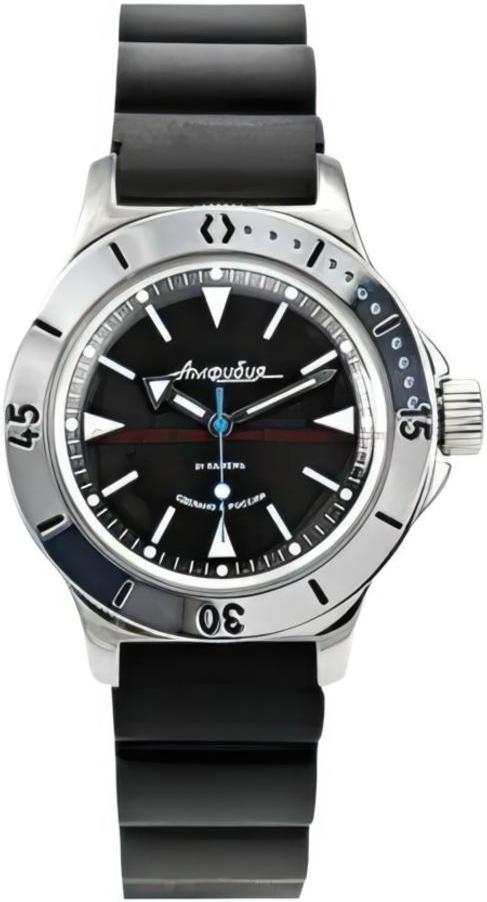 Мужские наручные часы Восток Амфибия 120512. Механические с автоподзаводом. Пружина механизма заводится автоматически благодаря естественным движениям владельца в процессе ежедневной носки часов. Корпус изготовлен из высококачественной нержавеющей стали 316L с высокими антикоррозийными свойствами. На стрелки и отметки нанесен светонакопительный состав, благодаря этому считывать информацию с циферблата возможно и в темноте. Полимерный ремешок. Натуральный полимерный материал является идеальным для изготовления ремешка благодаря своей чрезвычайной прочности и гибкости. Органическое стекло. Часы являются водонепроницаемыми до 20 Бар. Цвет корпуса: Черный. Цвет циферблата: Черный. Ширина (с заводной головкой): 42мм. Толщина: 15мм. Гарантия: 1 год.