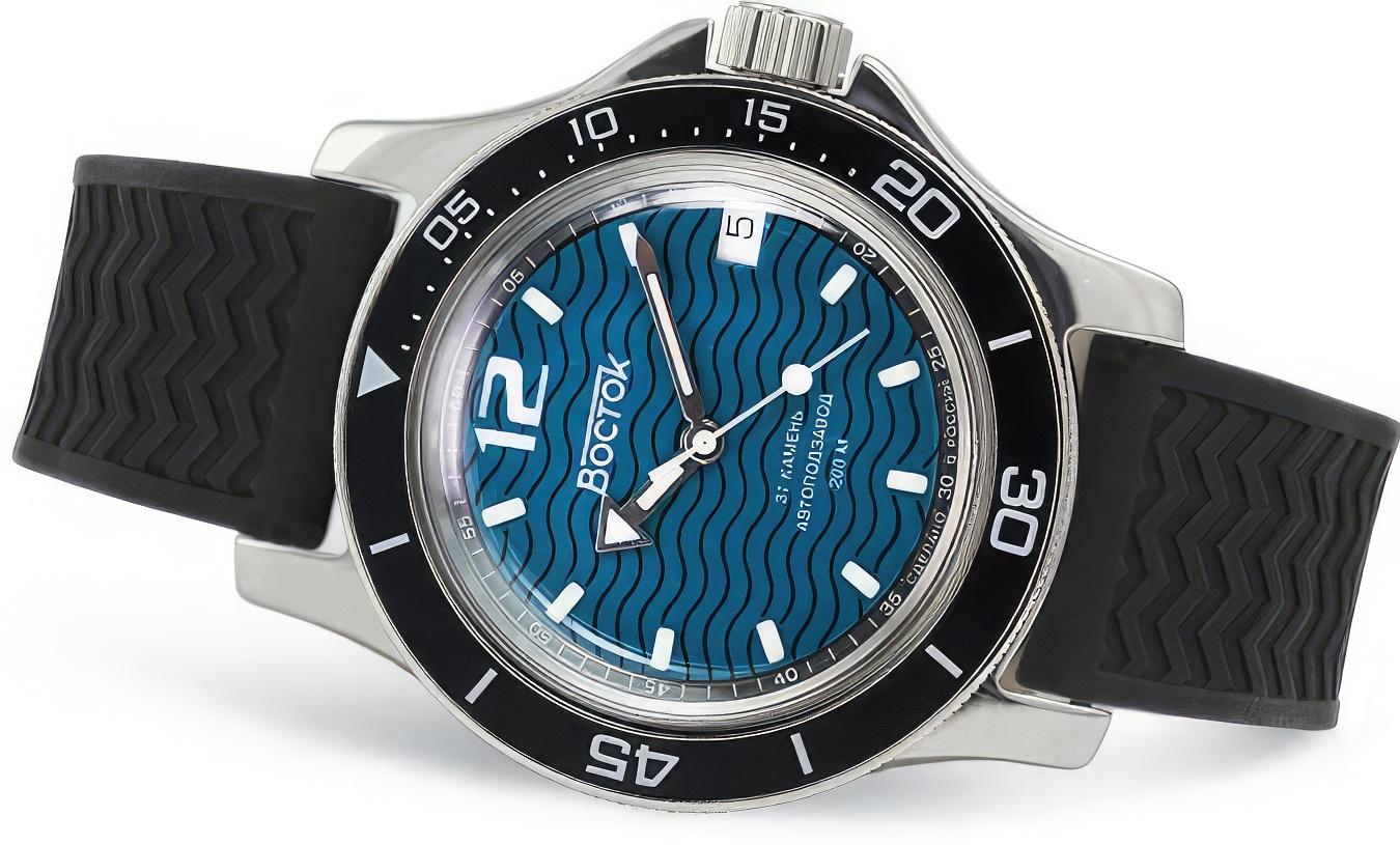 Мужские наручные часы Восток Амфибия 13040A. Механические с ручным подзаводом. Корпус изготовлен из высококачественной нержавеющей стали 316L с высокими антикоррозийными свойствами. На стрелки и отметки нанесен светонакопительный состав, благодаря этому считывать информацию с циферблата возможно и в темноте. На циферблате отображается текущее число месяца. Полимерный ремешок. Натуральный полимерный материал является идеальным для изготовления ремешка благодаря своей чрезвычайной прочности и гибкости. Органическое стекло. Часы являются водонепроницаемыми до 20 Бар. Цвет корпуса: Черный. Цвет циферблата: Синий. Ширина (с заводной головкой): 44мм. Толщина: 13мм. Гарантия: 1 год.