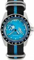 Мужские наручные часы Восток Амфибия 14031Г. Механические с автоподзаводом. Пружина механизма заводится автоматически благодаря естественным движениям владельца в процессе ежедневной носки часов. На стрелки и отметки нанесен светонакопительный состав, благодаря этому считывать информацию с циферблата возможно и в темноте. Текстильный ремешок. В отличие от кожаных ремешков, текстильный более устойчив к воздействию влаги и пота, не теряя своих свойств. Ударопрочная конструкция часов защищает от ударов и вибрации. Корпус изготовлен из высококачественной нержавеющей стали 316L с высокими антикоррозийными свойствами. Органическое стекло. Часы являются водонепроницаемыми до 20 Бар. Цвет корпуса: Серебристый. Цвет циферблата: Голубой. Высота (с ушками): 46.1 мм. Толщина: 15 мм. Гарантия: 1 год.