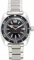 Мужские наручные часы Восток Амфибия 15049Г. Механические с автоподзаводом. Пружина механизма заводится автоматически благодаря естественным движениям владельца в процессе ежедневной носки часов. На стрелки и отметки нанесен светонакопительный состав, благодаря этому считывать информацию с циферблата возможно и в темноте. Браслет из нержавеющей стали обладает высокой прочностью и износостойкостью, обеспечивая долговечность даже при активной эксплуатации. Материал устойчив к коррозии и сохраняет свой внешний вид надолго. Ударопрочная конструкция часов защищает от ударов и вибрации. Корпус изготовлен из высококачественной нержавеющей стали 316L с высокими антикоррозийными свойствами. Органическое стекло. Часы являются водонепроницаемыми до 20 Бар. Цвет корпуса: Серебристый. Цвет циферблата: Черный. Высота (с ушками): 46.1 мм. Толщина: 15 мм. Гарантия: 1 год.