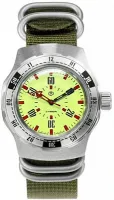 Мужские наручные часы Восток Амфибия 16032В. Автоматические с ручным подзаводом. Пружина механизма заводится автоматически благодаря естественным движениям владельца в процессе ежедневной носки часов. Также есть возможность ручного завода. На стрелки и отметки нанесен светонакопительный состав, благодаря этому считывать информацию с циферблата возможно и в темноте. Текстильный ремешок. В отличие от кожаных ремешков, текстильный более устойчив к воздействию влаги и пота, не теряя своих свойств. Ударопрочная конструкция часов защищает от ударов и вибрации. Корпус изготовлен из высококачественной нержавеющей стали 316L с высокими антикоррозийными свойствами. Органическое стекло. Часы являются водонепроницаемыми до 20 Бар. Цвет корпуса: Серебристый. Цвет циферблата: Желтый. Высота (с ушками): 48.5 мм. Толщина: 15 мм. Гарантия: 1 год.