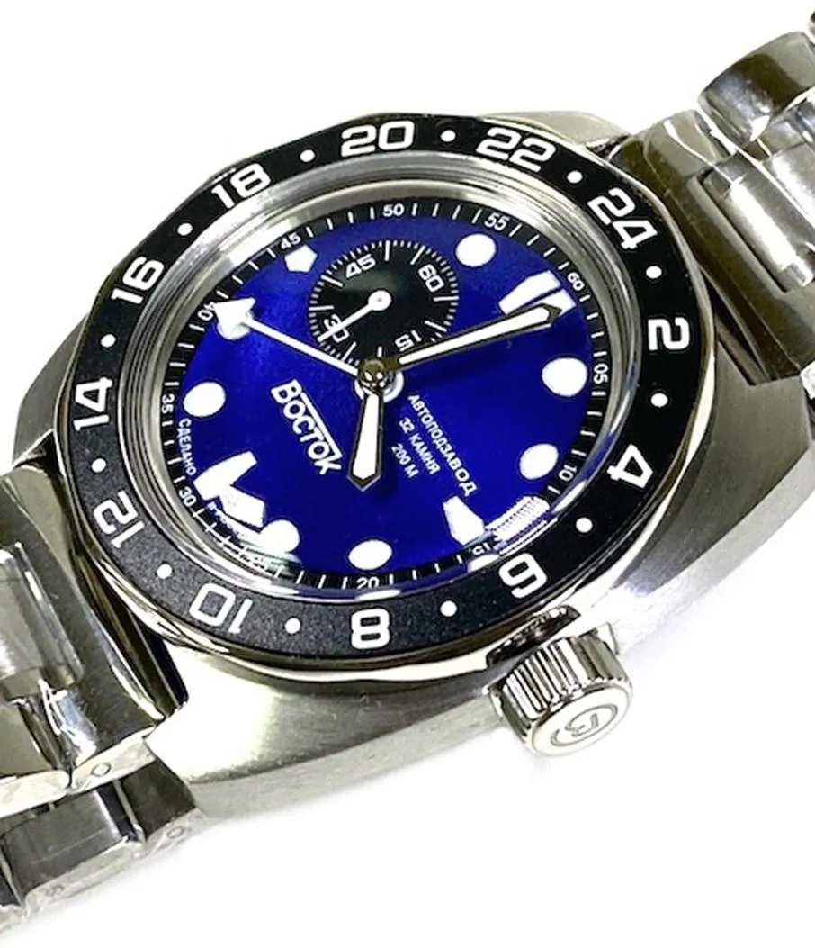 Мужские наручные часы Восток Амфибия 17035Б. Механические с ручным подзаводом. Корпус изготовлен из высококачественной нержавеющей стали 316L с высокими антикоррозийными свойствами. На стрелки и отметки нанесен светонакопительный состав, благодаря этому считывать информацию с циферблата возможно и в темноте. Ударопрочность. Батарейка на 10 летБраслет из нержавеющей стали. Органическое стекло. Часы являются водонепроницаемыми до 20 Бар. Цвет корпуса: Черный. Цвет циферблата: Синий. Ширина (с заводной головкой): 42мм. Толщина: 15мм. Гарантия: 1 год.