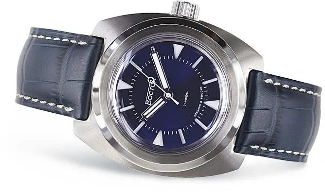 <b>Мужские наручные часы Восток Амфибия 170549.</b> Механические с ручным подзаводом. Корпус изготовлен из высококачественной нержавеющей стали 316L с высокими антикоррозийными свойствами. На стрелки и отметки нанесен светонакопительный состав, благодаря этому считывать информацию с циферблата возможно и в темноте. Ремешок изготовлен из кожи. Органическое стекло. Часы являются водонепроницаемыми до 20 Бар. Цвет корпуса: Серебристый. Цвет циферблата: Синий. Гарантия: 1 год.