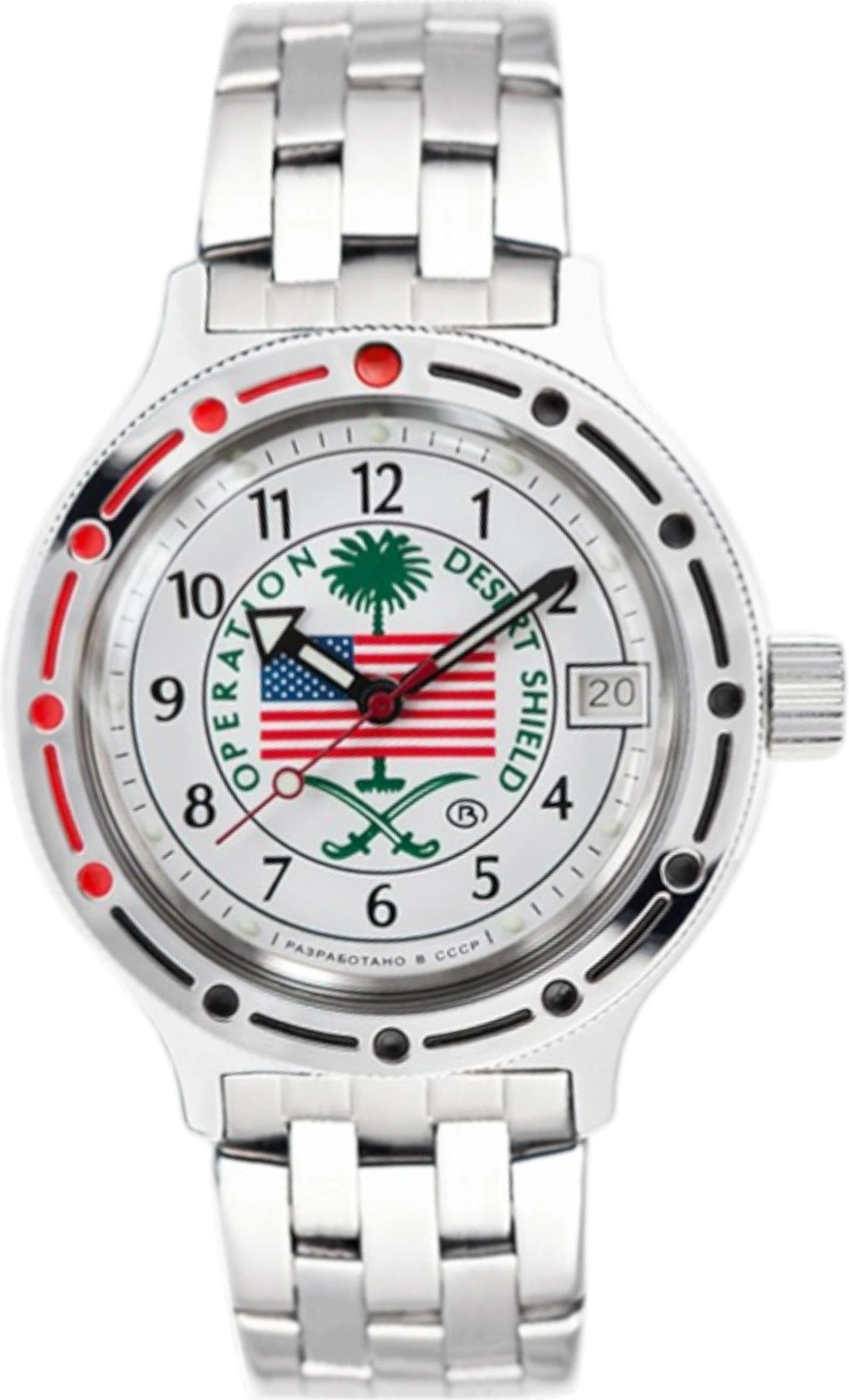 Мужские наручные часы Восток Амфибия 420065. Механические с автоподзаводом. Пружина механизма заводится автоматически благодаря естественным движениям владельца в процессе ежедневной носки часов. На стрелки и отметки нанесен светонакопительный состав, благодаря этому считывать информацию с циферблата возможно и в темноте. Браслет из нержавеющей стали обладает высокой прочностью и износостойкостью, обеспечивая долговечность даже при активной эксплуатации. Материал устойчив к коррозии и сохраняет свой внешний вид надолго. Ударопрочная конструкция часов защищает от ударов и вибрации. Корпус изготовлен из высококачественной нержавеющей стали 316L с высокими антикоррозийными свойствами. Органическое стекло. Часы являются водонепроницаемыми до 20 Бар. Цвет корпуса: Серебристый. Цвет циферблата: Белый. Высота (с ушками): 46 мм. Толщина: 15 мм. Гарантия: 1 год.