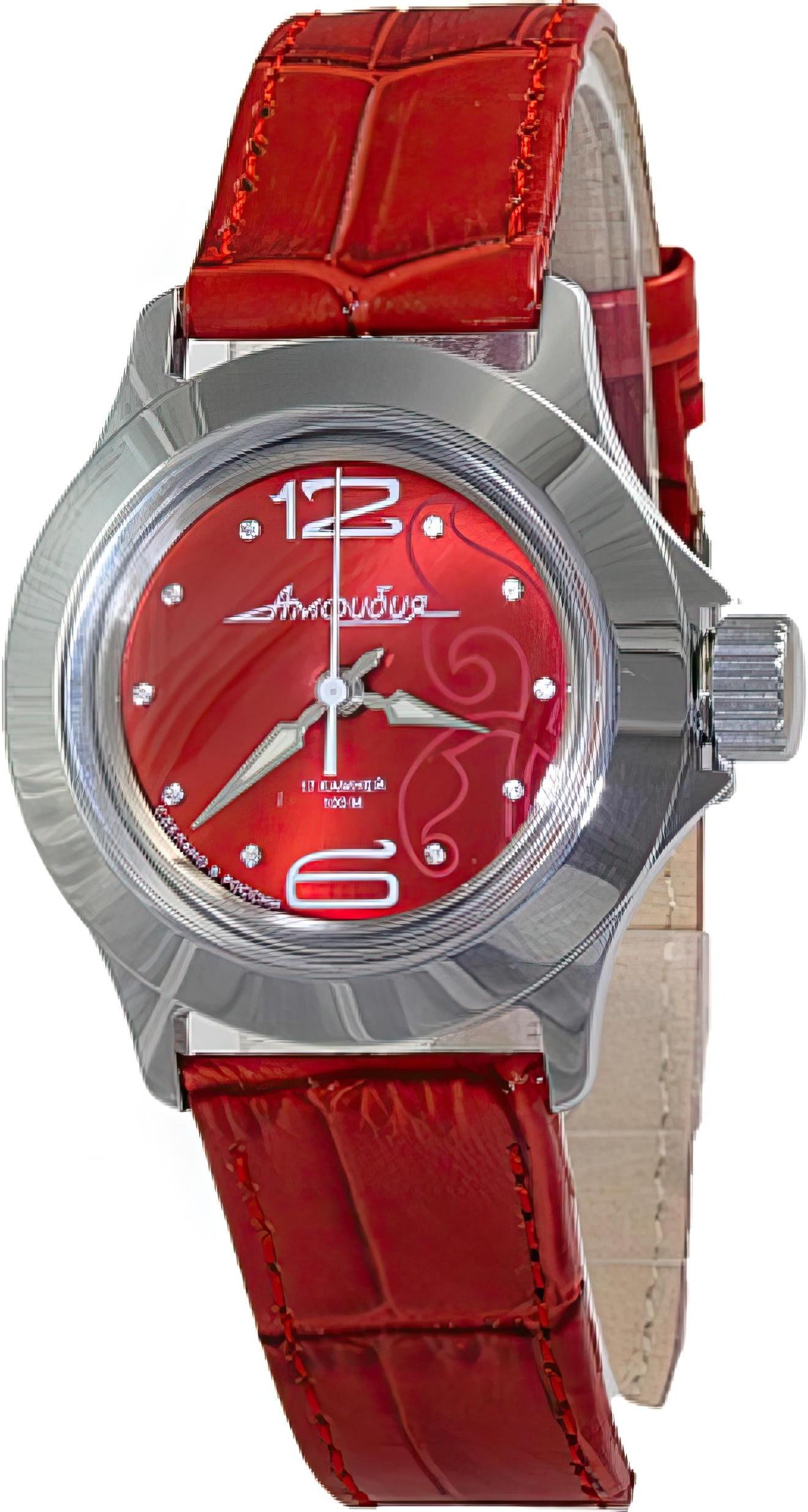 Женские наручные часы Восток Амфибия 051339. Механические с автоподзаводом. Пружина механизма заводится автоматически благодаря естественным движениям владельца в процессе ежедневной носки часов. Корпус изготовлен из высококачественной нержавеющей стали 316L с высокими антикоррозийными свойствами. На стрелки и отметки нанесен светонакопительный состав, благодаря этому считывать информацию с циферблата возможно и в темноте. Ремешок изготовлен из кожи. Органическое стекло. Часы являются водонепроницаемыми до 10 Бар. Цвет циферблата: Бежевый. Ширина (с заводной головкой): 33мм. Толщина: 11мм. Гарантия: 1 год.