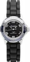 Женские наручные часы Восток Амфибия 051461. Механические с ручным подзаводом. Корпус изготовлен из высококачественной часовой латуни с высокими антикоррозийными свойствами. На стрелки и отметки нанесен светонакопительный состав, благодаря этому считывать информацию с циферблата возможно и в темноте. Полимерный ремешок. Натуральный полимерный материал является идеальным для изготовления ремешка благодаря своей чрезвычайной прочности и гибкости. Органическое стекло. Часы являются водонепроницаемыми до 10 Бар. Цвет циферблата: Черный. Ширина (с заводной головкой): 33мм. Толщина: 11мм. Гарантия: 1 год.