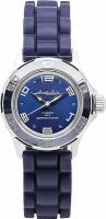 Женские наручные часы Восток Амфибия 051463. Механические с автоподзаводом. Пружина механизма заводится автоматически благодаря естественным движениям владельца в процессе ежедневной носки часов. Корпус изготовлен из высококачественной нержавеющей стали 316L с высокими антикоррозийными свойствами. На стрелки и отметки нанесен светонакопительный состав, благодаря этому считывать информацию с циферблата возможно и в темноте. Полимерный ремешок. Натуральный полимерный материал является идеальным для изготовления ремешка благодаря своей чрезвычайной прочности и гибкости. Органическое стекло. Часы являются водонепроницаемыми до 10 Бар. Цвет циферблата: Синий. Ширина (с заводной головкой): 34мм. Толщина: 11мм. Гарантия: 1 год.