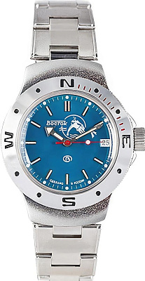 Мужские наручные часы Восток Амфибия 060059. Механические с автоподзаводом. Пружина механизма заводится автоматически благодаря естественным движениям владельца в процессе ежедневной носки часов. Корпус изготовлен из высококачественной нержавеющей стали 316L с высокими антикоррозийными свойствами. На стрелки и отметки нанесен светонакопительный состав, благодаря этому считывать информацию с циферблата возможно и в темноте. На циферблате отображается текущее число месяца. Браслет из нержавеющей стали. Органическое стекло. Часы являются водонепроницаемыми до 20 Бар. Цвет корпуса: Двухцветный. Цвет циферблата: Синий. Ширина (с заводной головкой): 42мм. Толщина: 13мм. Гарантия: 1 год.
