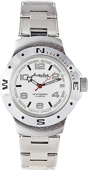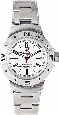 Мужские наручные часы Восток Амфибия 060434. Механические с автоподзаводом. Пружина механизма заводится автоматически благодаря естественным движениям владельца в процессе ежедневной носки часов. Корпус изготовлен из высококачественной нержавеющей стали 316L с высокими антикоррозийными свойствами. На стрелки и отметки нанесен светонакопительный состав, благодаря этому считывать информацию с циферблата возможно и в темноте. На циферблате отображается текущее число месяца. Браслет из нержавеющей стали. Органическое стекло. Часы являются водонепроницаемыми до 20 Бар. Цвет корпуса: Двухцветный. Цвет циферблата: Белый. Ширина (с заводной головкой): 42мм. Толщина: 13мм. Гарантия: 1 год.